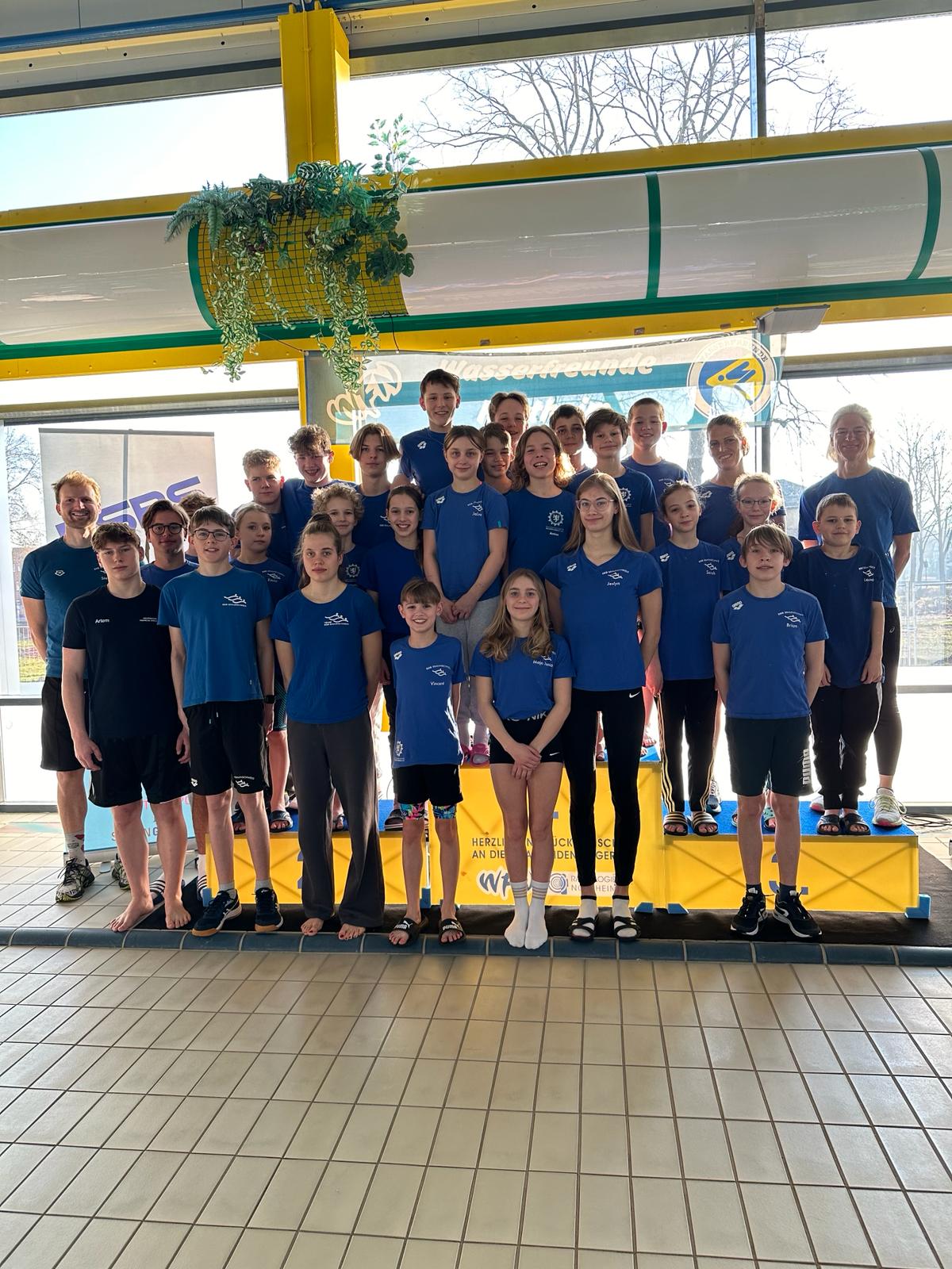 In Vorbereitung auf die bevorstehenden Landesjahrgangsmeisterschaften war schon jetzt erkennbar, dass in den zurückliegenden Wochen fleißig trainiert wurde, was sich in zahlreichen neuen Bestzeiten niederschlug. Auch die Medaillenausbeute kann sich nach zwei anstrengenden Tagen sehen lassen – 66 Goldmedaillen, 52 Silbermedaillen und 36 Bronzemedaillen konnten erschwommen werden.