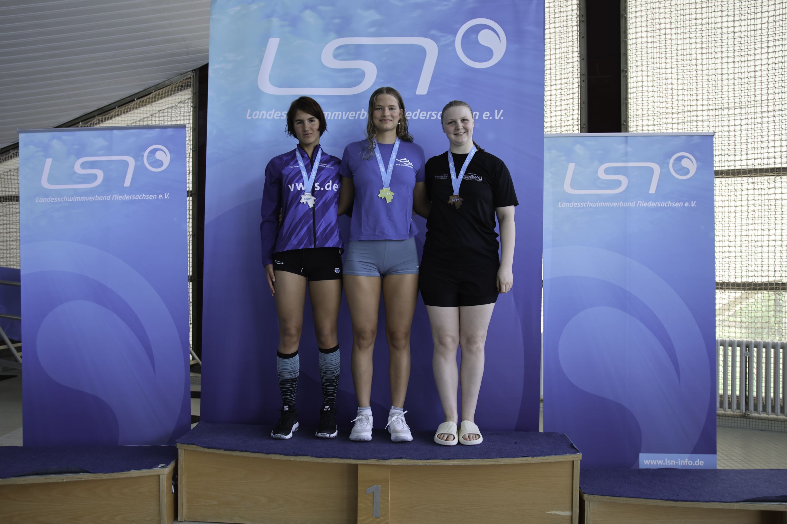 Auch bei den Jungen sammelte die SSG Braunschweig einige besondere Ausrufezeichen. Timo Wentland (PSV)gewann über 100m Freistil den Jahrgang 2011 und setzte über 50m Rücken mit 00:27,60 und einem neuen Landesjahrgangsrekord ein echtes Highlight. Ein solcher Rekord bedeutet, dass in ganz Niedersachsen noch kein Schwimmer dieses Alters jemals schneller auf dieser Strecke war – eine außergewöhnliche Leistung und ein klares Zeichen für sein großes Potenzial. Dazu kam für ihn noch der Jahrgangstitel über 1500m Freistil, was seine Vielseitigkeit und Ausdauer eindrucksvoll unterstreicht. Ebenfalls erfolgreich war Conrad Vollmer (PSV), der im Jahrgang 2012 über 50m Brust Landesjahrgangsmeister wurde und auch über 100m Freistil vorne mitmischte. Lukas Winter (PSV)bestätigte die gute SSG-Bilanz in denselben Strecken mit Platz zwei im Jahrgang über 50m Brust und Rang drei über 100m Freistil. Auch Frederik Schöne (Jg.2009/PSV) konnte sich mehrfach stark präsentieren und sicherte sich unter anderem zwei dritte Plätze in der offenen Wertung sowie eine tolle Medaillenbilanz über 200 sowie 800 Kraul.